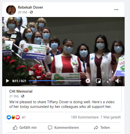 Der Fall der Krankenschwester Tiffany Pontes Dover, die kurz nach einer Impfung gegen Covid-19 kollabierte wird immer mysteriöser. Und ich bitte um Eure Hilfe Licht in das Dunkel zu bringen.