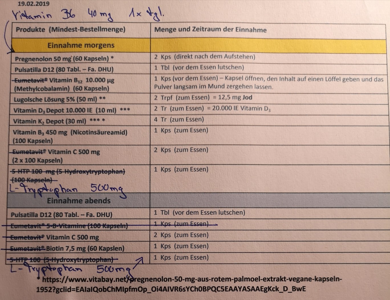 Und trotz allem, nahmen alle Ärzte mir immer nur die normalen Blutwerte ab. Kein einziger hat je meine Neurotransmitter, Nährstoffe usw. kontrolliert.