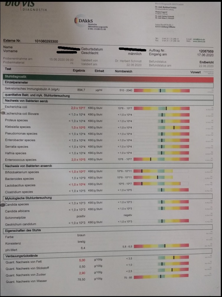 Das mit den Bakterien an den falschen Stellen kann gut sein. Habe vor 3 Wochen mittels Stuhltest das Biotop untersuchen lassen und da wurde auch vermutet, dass evtl eine Fehlbesiedlung stattgefunden hat, durch Bakterien die aus dem Dickdarm in den Dünndarm gewandert sind...