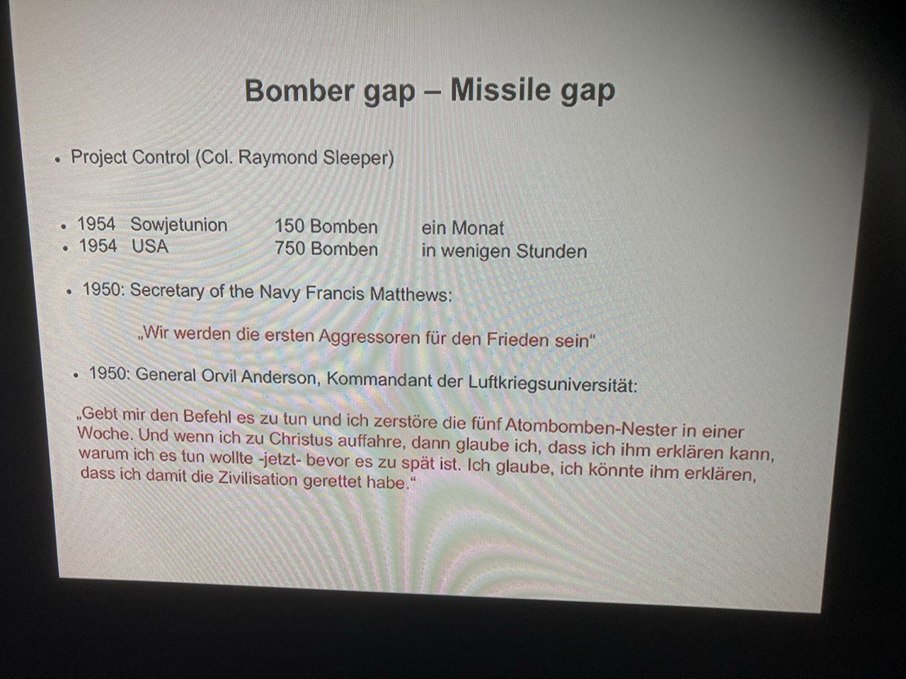 Ein führender General damals sagte: „Wenn am Ende eine Atomkriegs 2 Amerikaner und ein Russe übrig sind, haben wir gewonnen!“