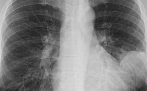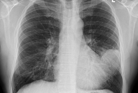 Abb1.: Röntgenaufnahme einer Lunge – Diagnose Lungenentzündung; zum Vergrößern auf das Bild klicken.