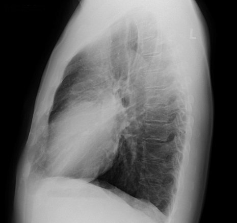 Abb.2: Röntgenaufnahme Lungenentzündung – Aufnahme von der Seite. Zum Vergößern auf das Bild klicken.
