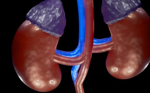 Abb.1: Eine grafische Darstellung der Nieren zusammen mit den großen Blutgefäßen und den ableitenden Harnwegen. Bild: 123rf.com, Rajesh Rajendran Nair.